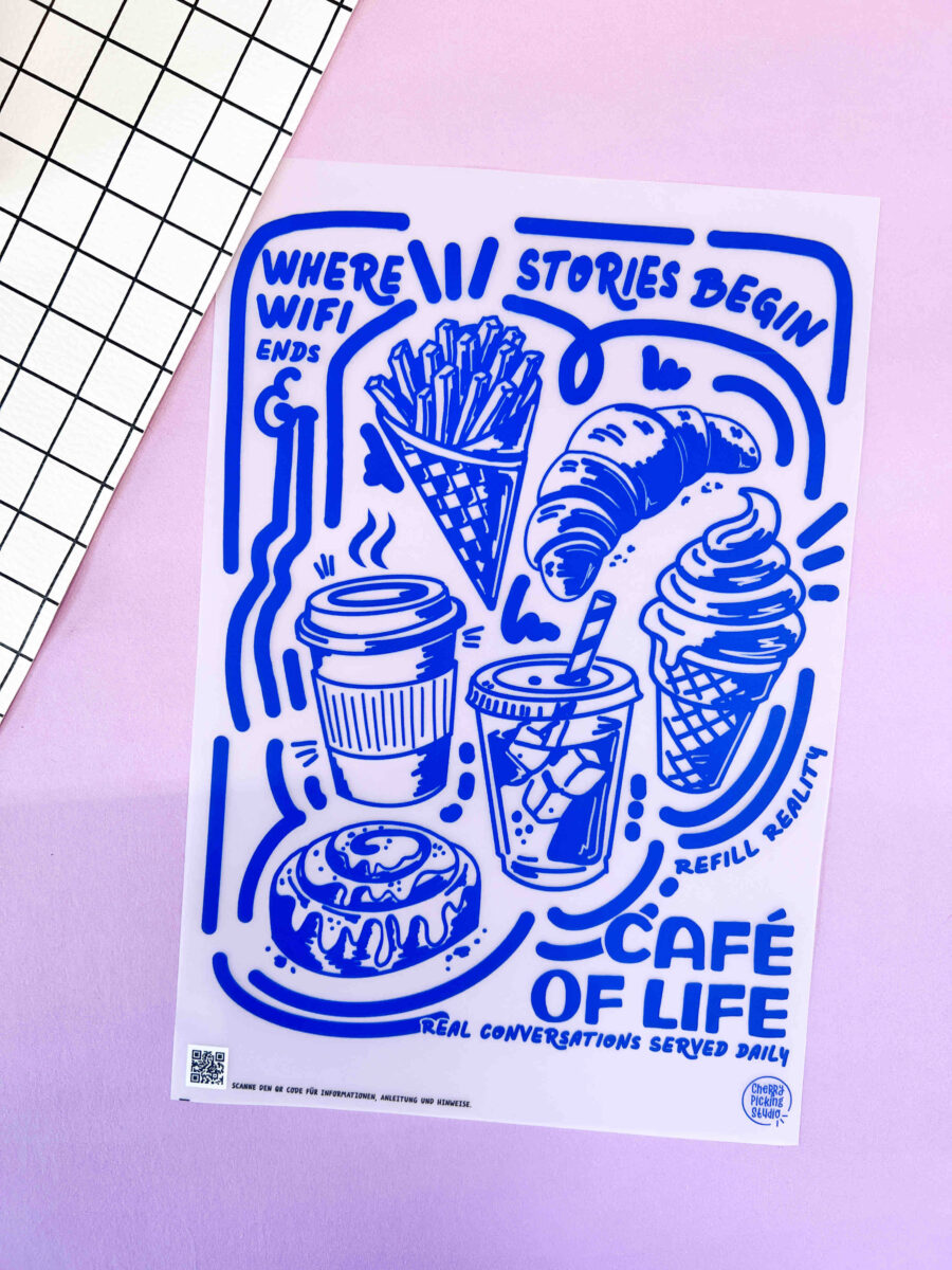 Blue Cafe – XL Motiv zB für den Rücken vom Shirt / Siebdruck Look