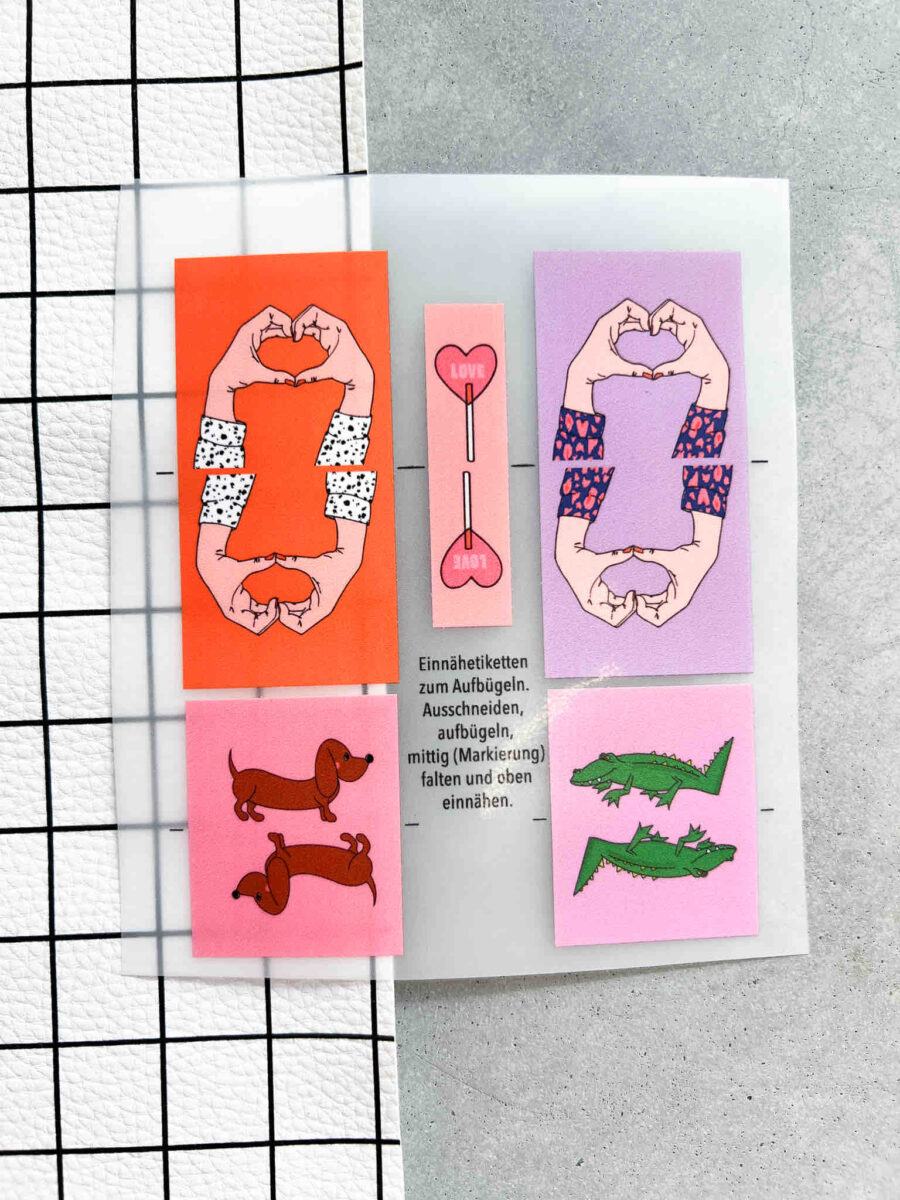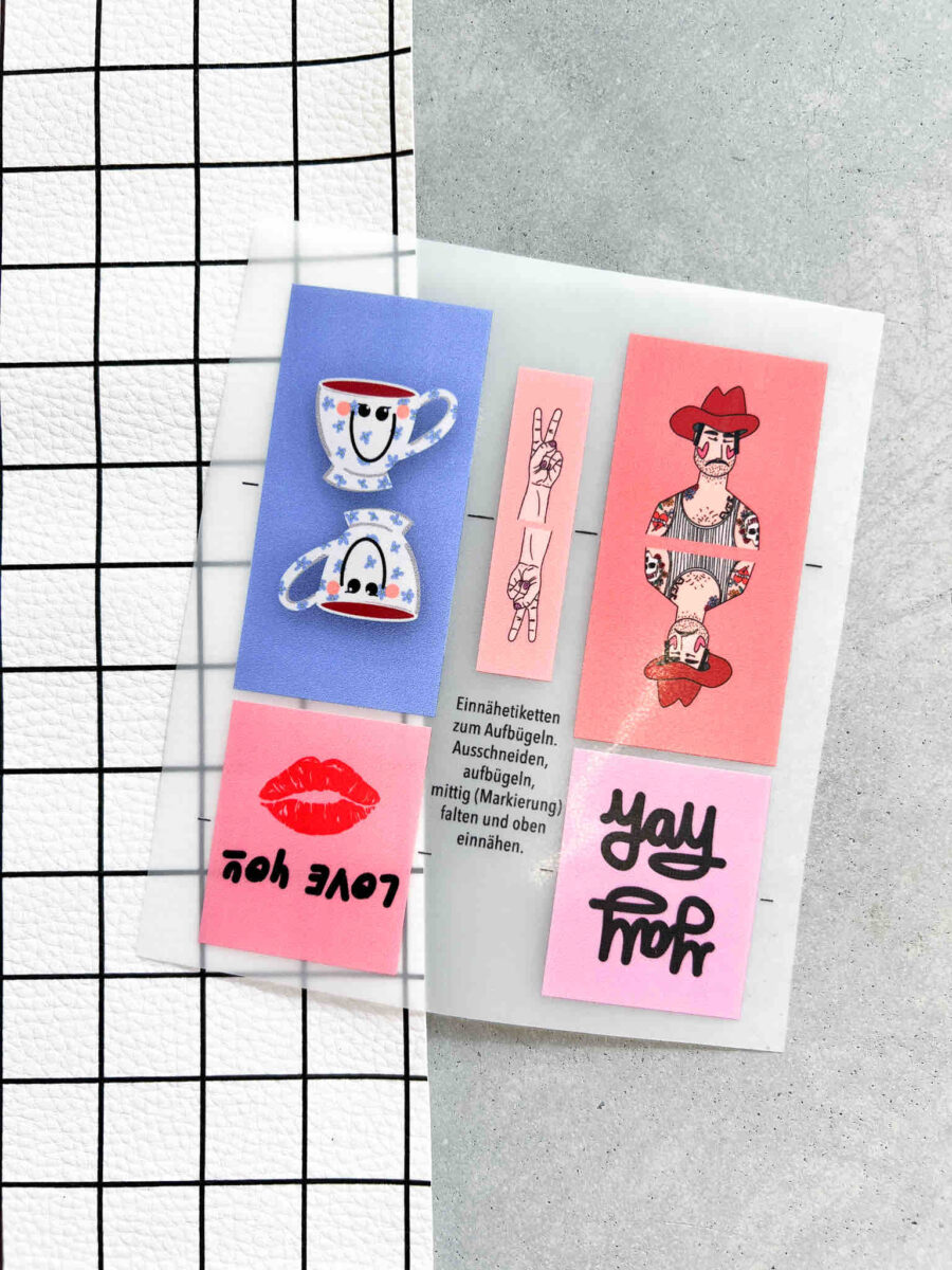 Mit meinem Bügelbild-Set für Einnähetiketten kannst du deine selbstgenähten Stücke noch individueller machen. Einfach das Motiv auf ein nicht fransendes Material (z. B. Kunstleder oder Filz) aufbügeln, ausschneiden und als Etikett einnähen. So gestaltest du deine ganz eigenen Labels für Shirts, Taschen, Beutel oder Accessoires.