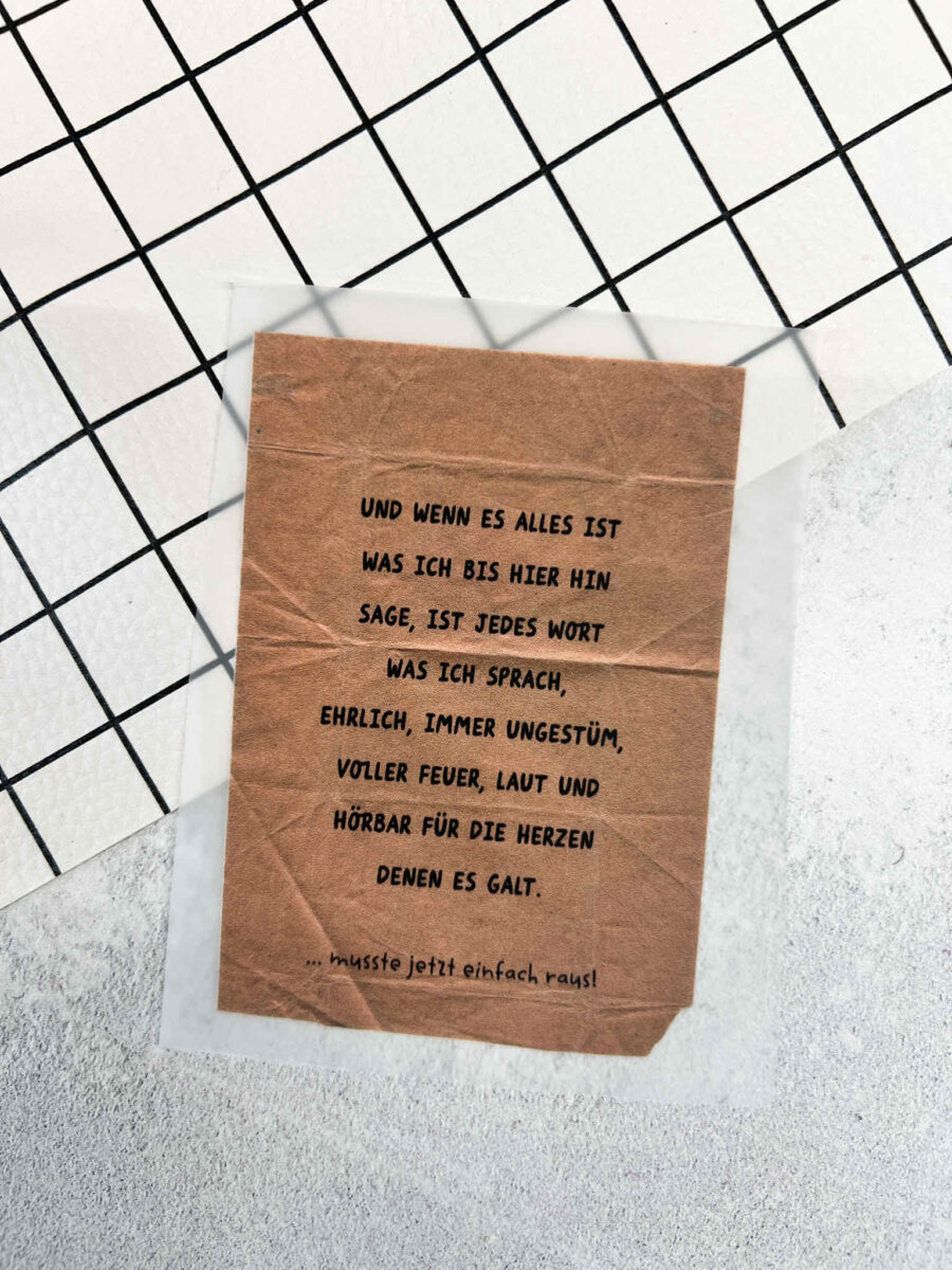 • Das beste Ergebnis erzielst du mit einer Heißpresse (Transferpresse) bei 160° und 15 Sekunden Pressdauer.